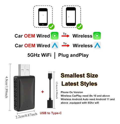 Adaptador Inalámbrico CarPlay a Android Auto 2 en 1 – USB Plug and Play