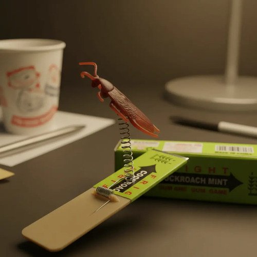 – Al tirar del chicle, salta una cucaracha de goma
