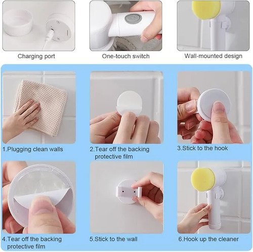 Cuenta con varios accesorios que se adaptan a diferentes necesidades: esponjas para limpiar superficies delicadas, mopa para acabados más suaves y cabezales ideales para eliminar grasa o suciedad adherida. Su funcionamiento eléctrico ayuda a reducir el esfuerzo durante la limpieza.