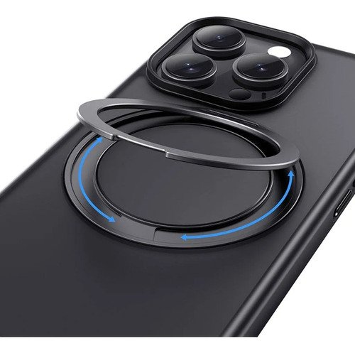 Protegé tu iPhone con estilo y funcionalidad gracias a esta funda negra con anillo soporte integrado. Su diseño moderno y minimalista brinda máxima protección contra golpes y caídas, mientras que el anillo trasero permite un agarre seguro y puede usarse como soporte para ver videos cómodamente.