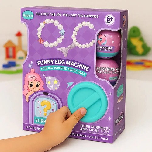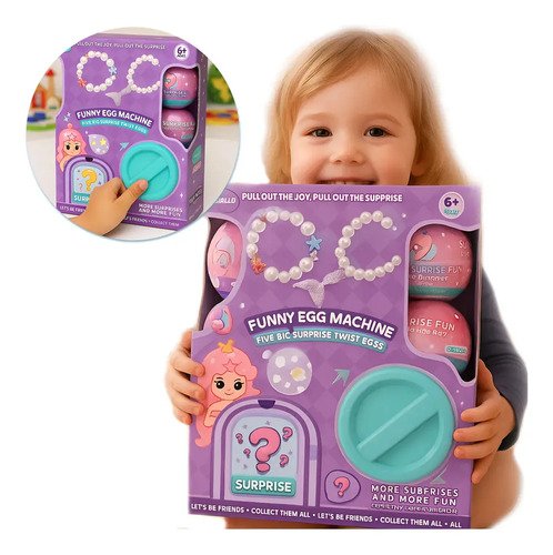 Diversión asegurada para los peques! Solo tienes que girar la perilla y mágicamente caerá un huevo sorpresa con un regalo en su interior.