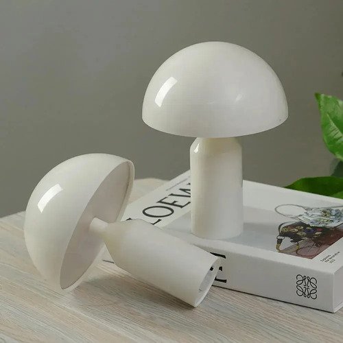 Las lámparas tipo mush o hongo a pila son un objeto de diseño contemporáneo que combina estética y funcionalidad. Su forma redondeada con una base cilíndrica y una pantalla semiesférica evoca los clásicos diseños de mediados del siglo XX, pero adaptados a un estilo minimalista y cálido.