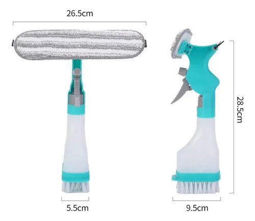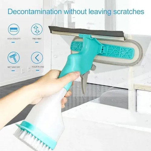 Gracias a su pulverizador integrado de amplia cobertura, el detergente se distribuye de forma uniforme sobre la superficie, optimizando el uso del producto y mejorando la eficacia de limpieza. El raspador de goma ayuda a remover fácilmente la suciedad y el exceso de agua, dejando los vidrios más limpios y brillantes.