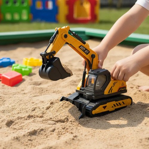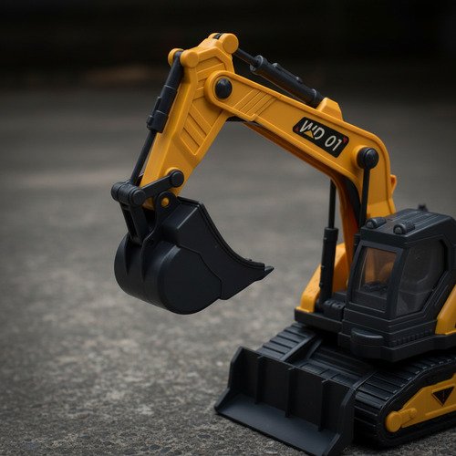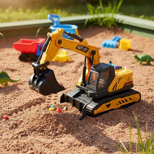 Su brazo y pala articulados permiten simular verdaderos movimientos de excavación, mientras que su diseño robusto con orugas simuladas aporta mayor realismo y resistencia.