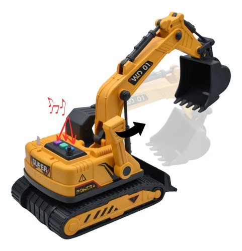 Divertida máquina excavadora de juguete, ideal para que los niños disfruten horas de juego imaginativo. Cuenta con movimiento a fricción y efectos de luz y sonidos realistas que hacen la experiencia mucho más entretenida.