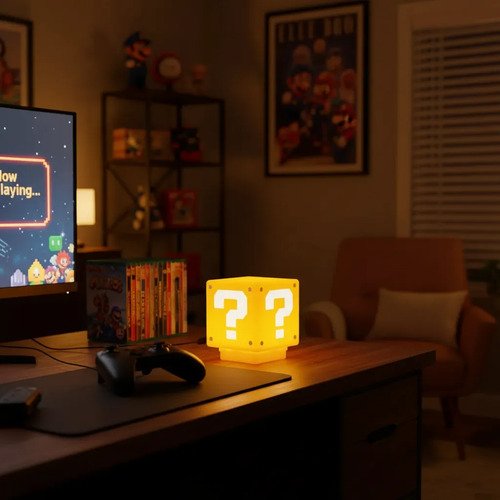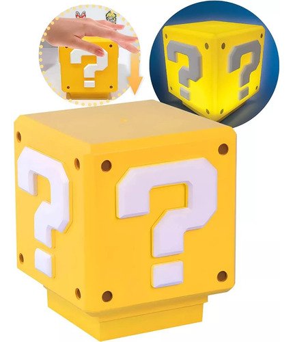 La lámpara de mesa Mario Bros Cubo es el complemento perfecto para la habitación de tus hijos. Con su diseño inspirado en el famoso personaje de videojuegos, esta lámpara LED de color amarillo brinda una luz suave y cálida que crea un ambiente acogedor y divertido. Su tamaño compacto de 10 cm de diámetro y 11 cm de altura la hace ideal para colocar en cualquier lugar. Además, cuenta con conexión USB, lo que facilita su uso y carga. La pantalla de plástico garantiza durabilidad y resistencia. Ilumina el mundo de tus hijos con esta encantadora lámpara Mario Bros Cubo.
