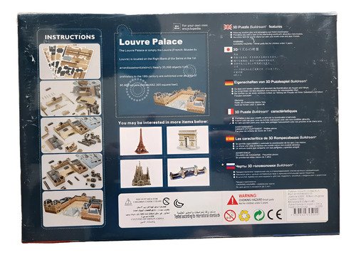 Puzzle 3D del Museo del Louvre, ideal para quienes disfrutan los desafíos, la arquitectura y las actividades creativas. Un modelo detallado que permite construir en casa uno de los museos más famosos del mundo.