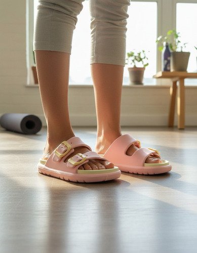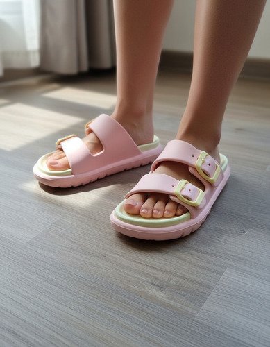 Estas sandalias cuentan con doble hebilla ajustable y una base ergonómica que brinda confort durante todo el día. El material de goma EVA es suave, flexible y resistente al agua, perfecto para uso diario o en la playa.