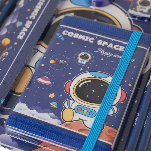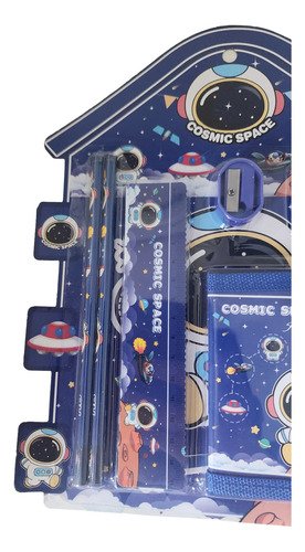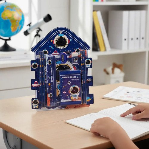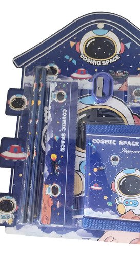 Un increíble set escolar con temática de astronautas y el universo, ideal para pequeños exploradores que sueñan con descubrir nuevos mundos. Incluye: