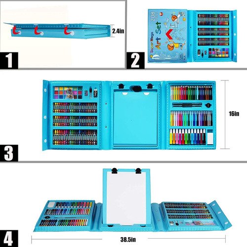 Desarrollá tu creatividad con este completo set de arte de 208 piezas, ideal tanto para principiantes como para artistas. Incluye una gran variedad de materiales de dibujo y pintura, todos organizados en un maletín portátil, práctico y fácil de transportar.
