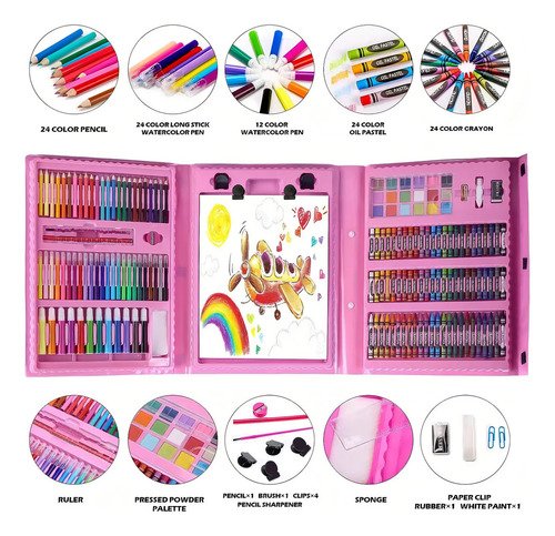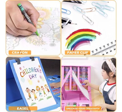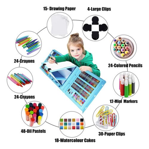 Desarrollá tu creatividad con este completo set de arte de 208 piezas, ideal tanto para principiantes como para artistas. Incluye una gran variedad de materiales de dibujo y pintura, todos organizados en un maletín portátil, práctico y fácil de transportar.