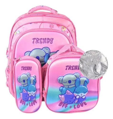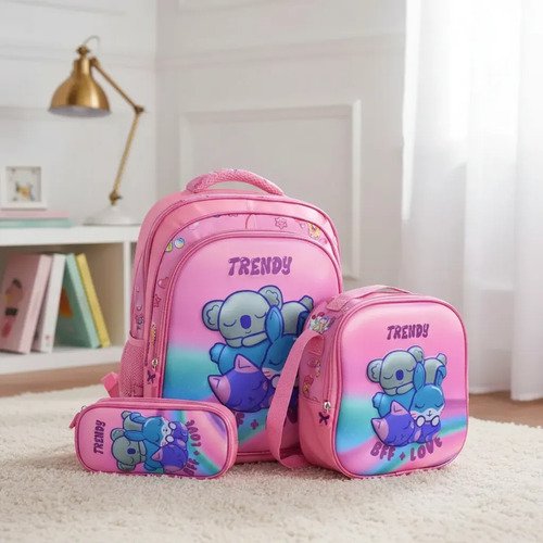 Todo lo que necesitás para el día a día escolar en un solo combo práctico y con un diseño que marca la diferencia. Este set en color azul con diseño de fútbol en 3D, o koala rosa, es ideal para los fanáticos del deporte que quieren llevar su pasión a todos lados.