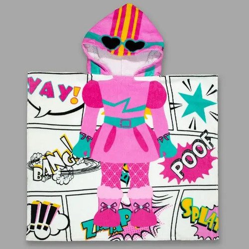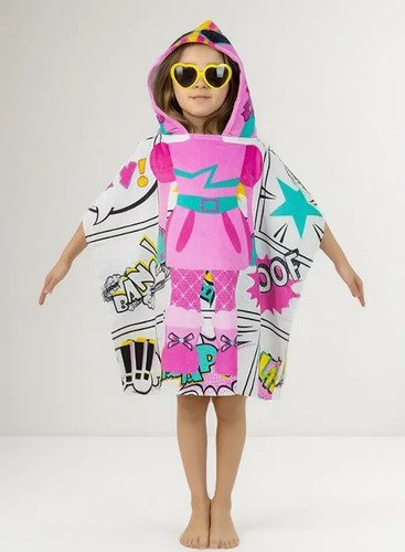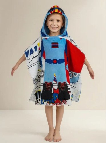 Poncho toalla ideal para la playa o piscina! Fabricado 100% en algodón, esta toalla seca de verdad! Con capucha, para protejer a l@s Pikis de la brisa. Talle único, mide 60 cm de hombros hacia abajo.